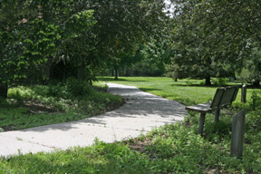 The Franklin-Cotterell Greens, more commonly known as the North Bend Arboretum, lie on the grounds of North Bend Central high school in the northwest corner of North Bend. It was begun in 1991 and now features over 1,000 trees and shrubs of over 115 different species and cultivars. With the landscaping and trail system already in place, the Arboretum was a natural place to begin a city-wide trail system. Until 2009 most of the trails in the North Bend Arboretum were grass, dirt or woodchips. Now, the goal of raising funds to cover the mile-long trail with pavement is about half compelte. The pavement is eight feet wide, giving walkers plenty of room to walk side by side and bikers room enough to pass slower moving traffic. The pavement also provides greater accessibility to disabled citizens and give people a consistent, clean surface to walk or jog on. During the summer of 2009 the southern loop around the football field was completed, thanks in part to a large donation by B&E Construction. That completed about half of the planned paved trails through the arboretum. Still in the plans are a loop to the north, around the practice football fields. Phase one of the paving project was completed and dedicated in August 2007 and connects the North Bend Central football stadium and track to the parking lot. Click here to read the Eagle's coverage of the dedication and opening of phase one. Also already complete is an 880-foot loop in the southeast corner of the Arboretum which connects to nearby Birchwood Manor. Help still needed Help is still needed to turn this vision into a reality. To make a tax deductible donation, please send your name and address along with your donation to the address below. If you would like to dedicate your donation in memory of a loved one, please included that information as well. Donations can be sent to: North Bend Community Arboretum