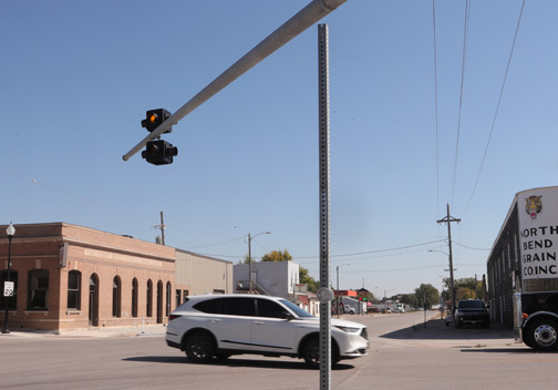 More changes coming to highway crossingby Mary Le Arneal The intersection of Platte River Road and Highway 79 in downtown North Bend will become a four-way stop starting next week. When the Nebraska Department of Transportation first starting talking about what would happen to the “old” Highway 30 and Highway 79 intersection, the plan was to have one-way traffic stop. According to Barbara Gerbino-Bevins, the District 2 NDOT Construction Engineer, NDOT was planning on swapping the stop movements, to stop traffic on Platte River Road and let Highway 79 traffic go without stopping. “That plan has changed, Gerbino-Bevins said. “Now, the plan is to just make this intersection a four-way stop for the foreseeable future.” The new stop signs are scheduled to be put in place Oct. 10. NDOT will continue to monitor this intersection to see if additional changes are needed. The present blinking light will remain with blinking red lights facing all four directions. Before the changes were decided upon, traffic counts were taken at this intersection last winter. Gerbino-Bevins said NDOT determined a four-way stop would better fit the current situation. Recent research also suggests four-way stops may reduce crashes better than two-way stop signs. The concrete medium, or thumb, sticking out of the northeast corner of the intersection near the old Corner Cafe will remain in place, Gerbino-Bevins said. “During the design process prior to construction, city officials and businesses had indicated vehicles parked in the south-most parking stall in front of the Corner Cafe would often be damaged by turning semi-trailers,” Gerbino-Bevins said. “The purpose of this concrete median is to keep traffic from cutting too close to this corner when turning in the hope of preventing further damage to parked vehicles.”